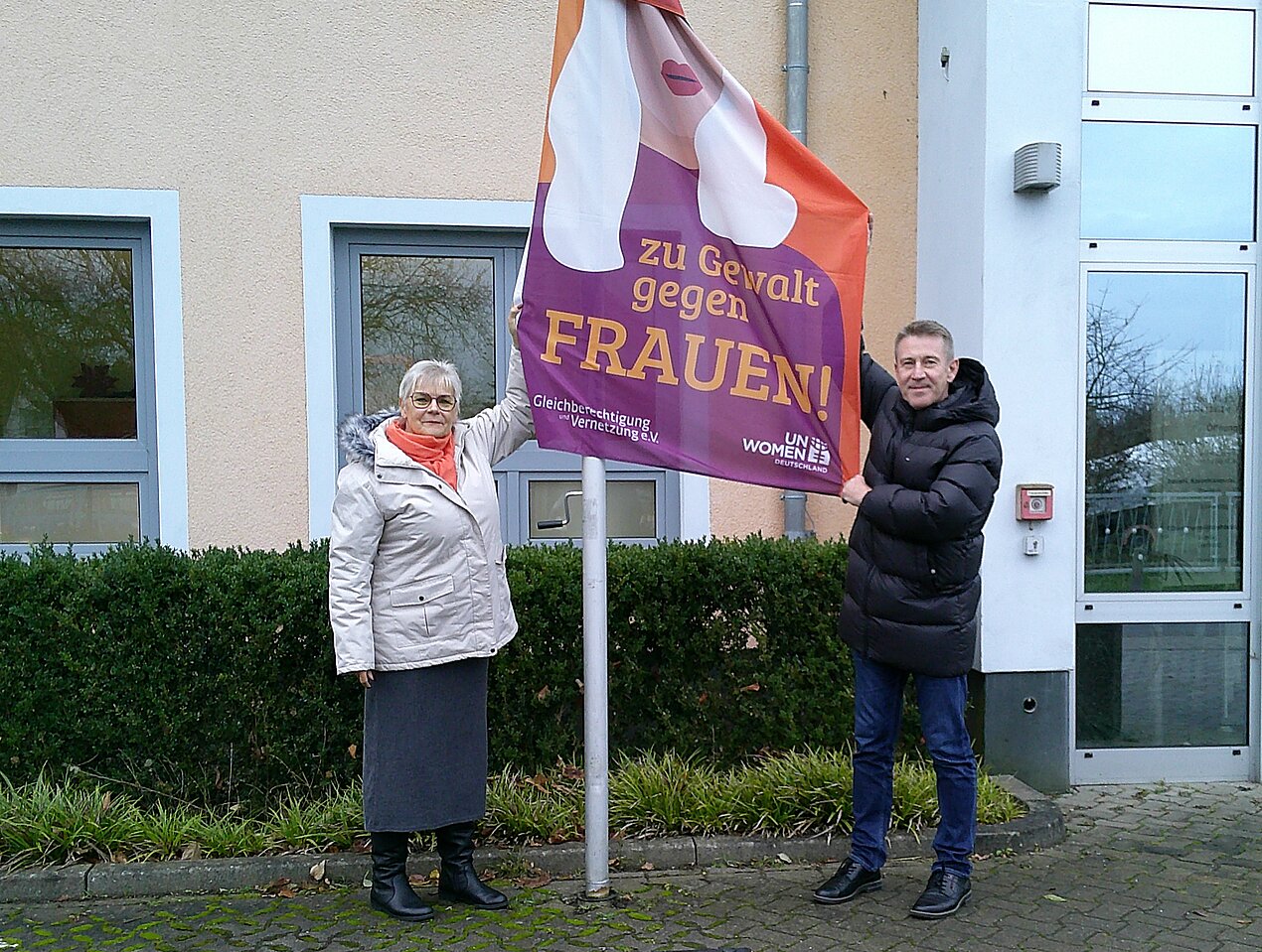 Am 25. November, dem Internationalen Tag gegen Gewalt an Frauen und Mädchen, hat die Gemeinde ein sichtbares Zeichen der Solidarität und Unterstützung gesetzt. Gemeinsam mit der Gleichstellungsbeauftragten Daniela Peetz hisste Bürgermeister Wolfgang Geppert am Morgen die orangefarbene Flagge vor der Gemeindeverwaltung. Damit macht die Gemeinde deutlich: Gewalt hat keinen Platz in unserer Gesellschaft.