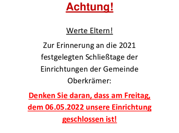 Achtung – Schließtag