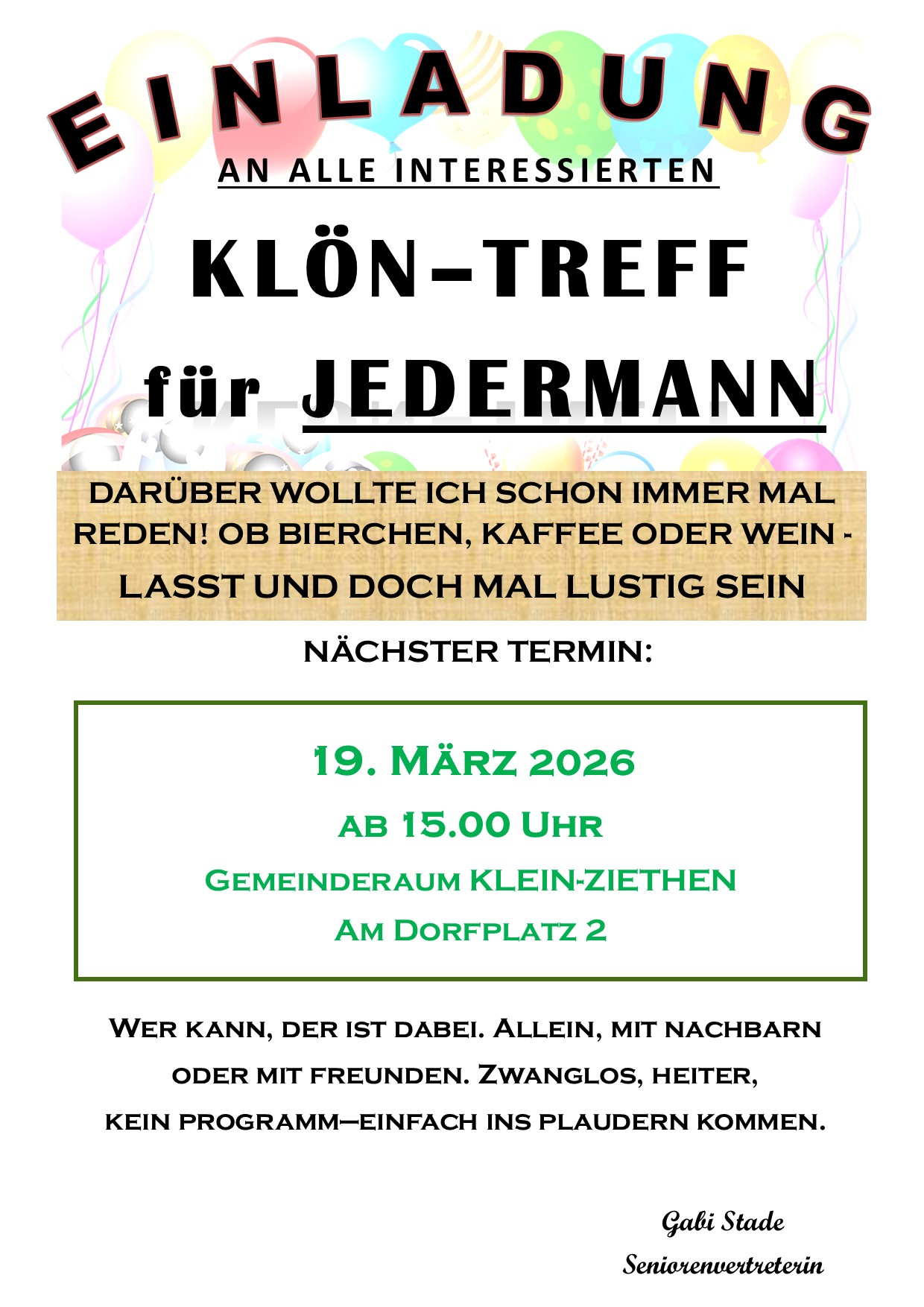 Zum Klön-Treff für JEDERMANN